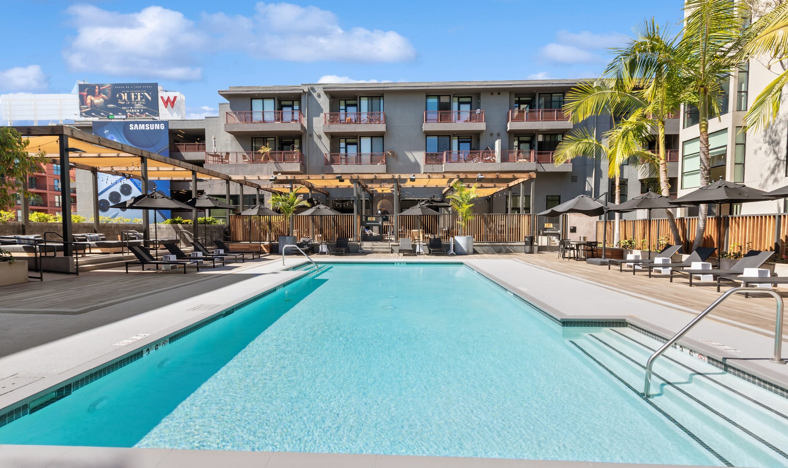 Dive into luxury in our resort-style pool, the largest in Hollywood, offering a perfect blend of relaxation and sophistication.